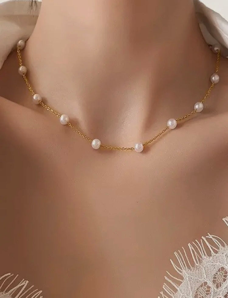 The Blissful and Sincerely necklaces are Titanium Steel Non-Tarnish Classic Pearl Necklace, a timeless piece that exudes elegance and durability. Crafted from premium titanium steel, this necklace is designed to resist tarnishing, ensuring it retains its lustrous shine. The classic design features pearls that adds a touch of class.