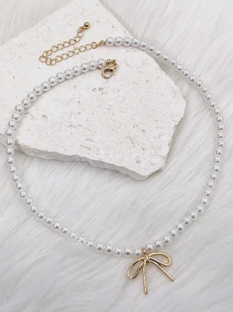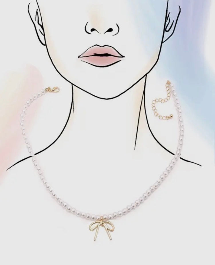 GIRLIE PEARLIE BOW NECKLACE