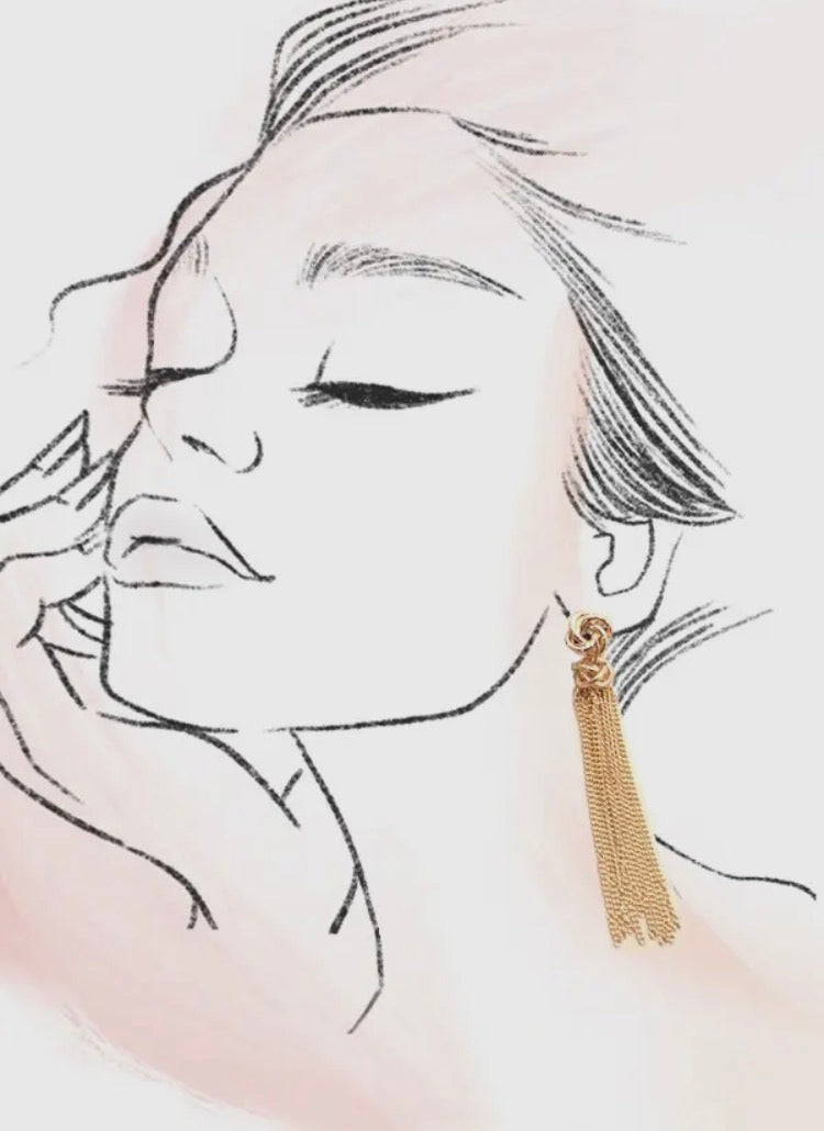 Gold Knot Tassel Drop Earrings are a chic and elegant made with precision. These earrings feature a sophisticated knot design in gleaming gold, adorned with delicate tassel drops for a touch of movement and charm. The combination of timeless knot motifs and trendy tassel accents makes these earrings perfect for both formal events and everyday wear.