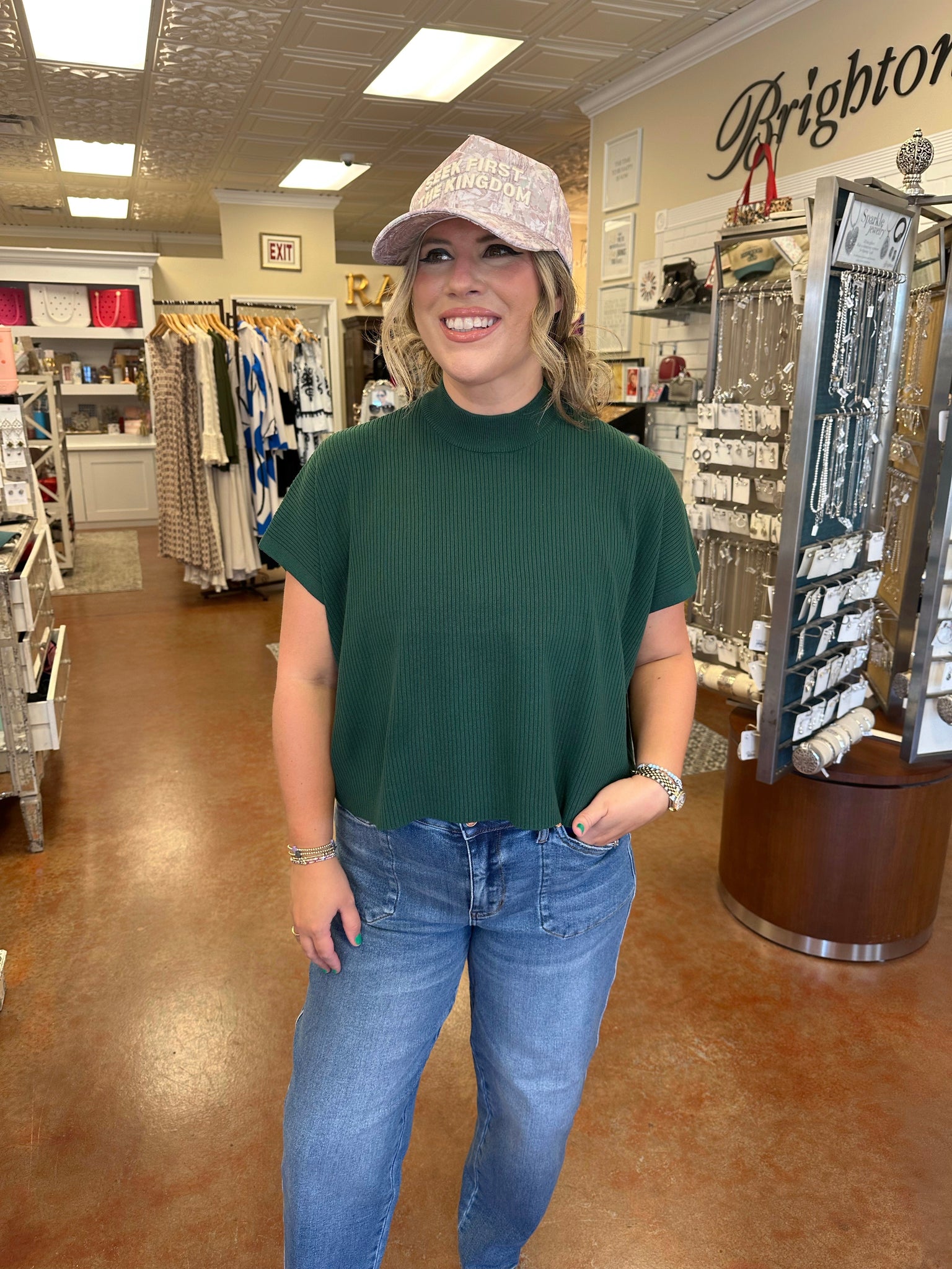 This light weight dolman cut sweater is the perfect addition to your wardrobe. It features a mock neckline with drop shoulder, short sleeves and a ribbed band at the waist.