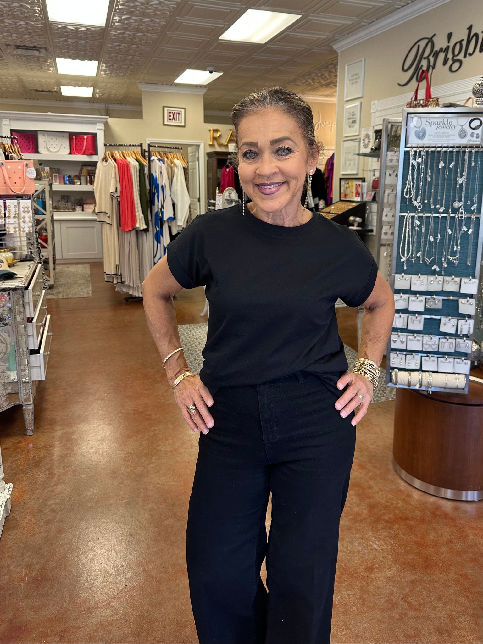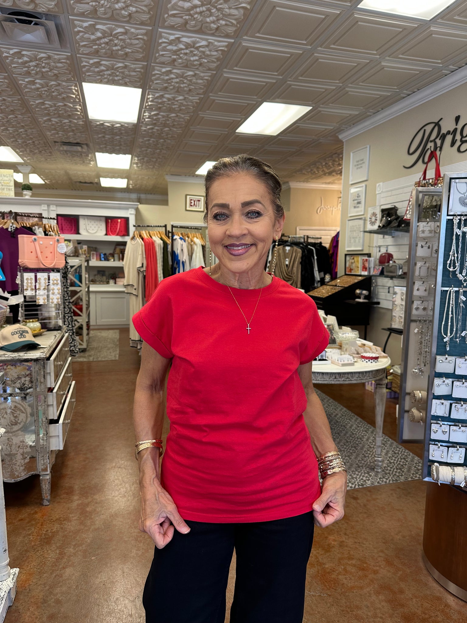 A t-shirt, quality cotton with folded cuff sleeve. Relaxed fit.