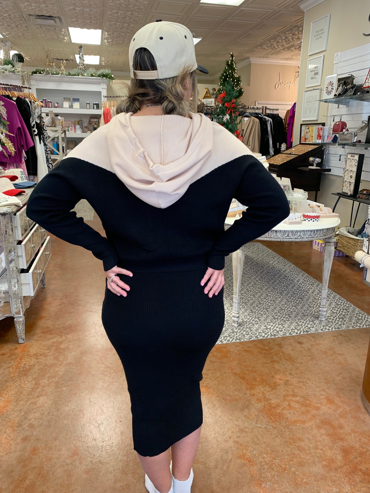 NEVER TOO LATE COLOR BLOCK HOODIE DRESS