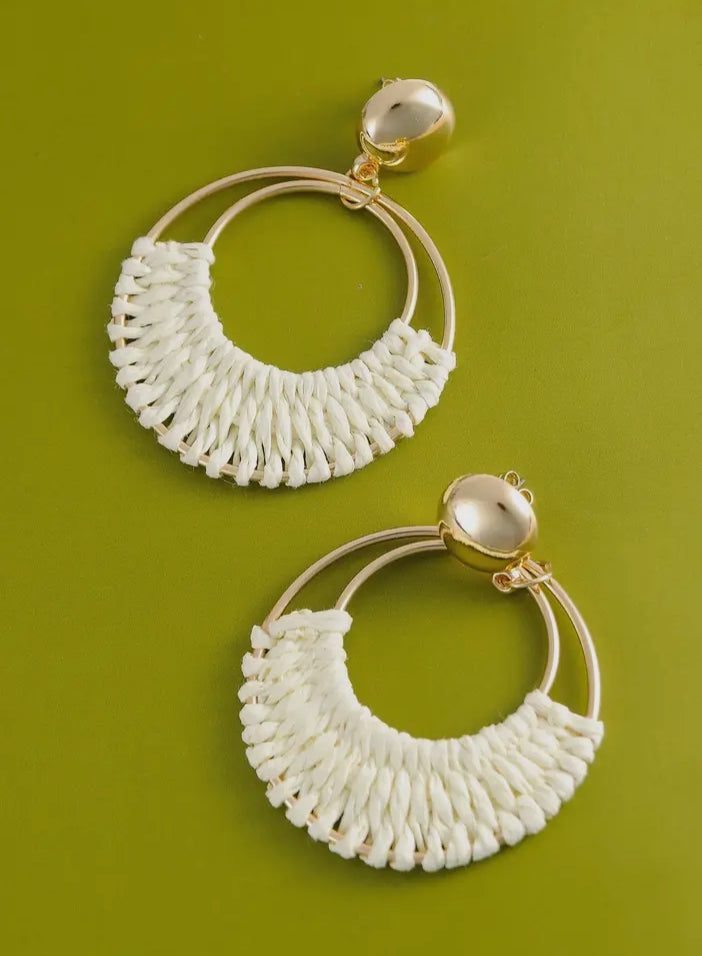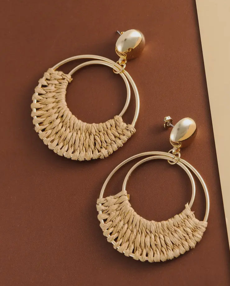 These handwoven bohemian hoops. The natural materials and neutral colors make these a perfect combination to elevate your style.