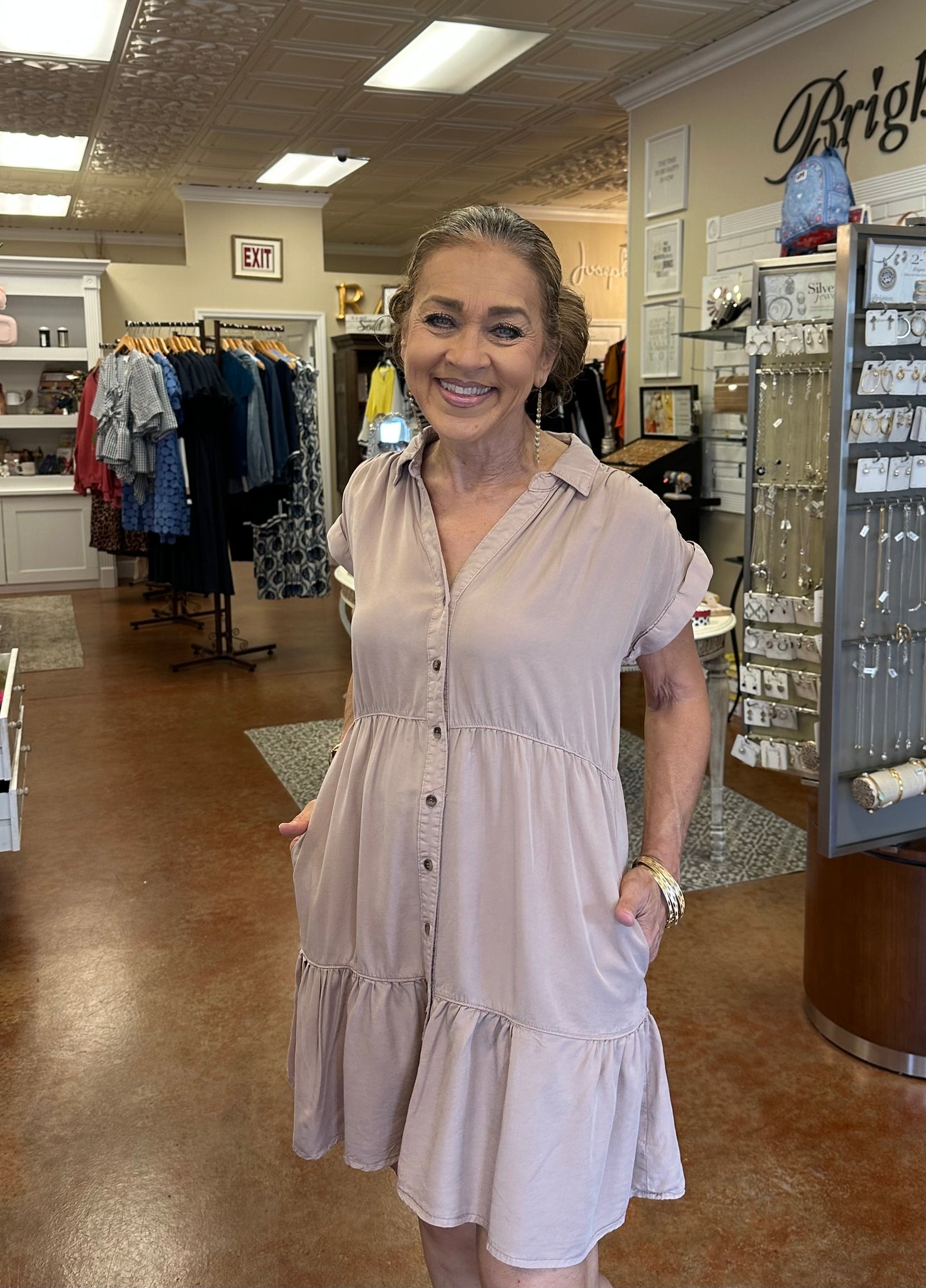 Lyocell mini shirt dress with dolman sleeves and ruffled hem, Contemporary loose fit for resort or everyday wear
