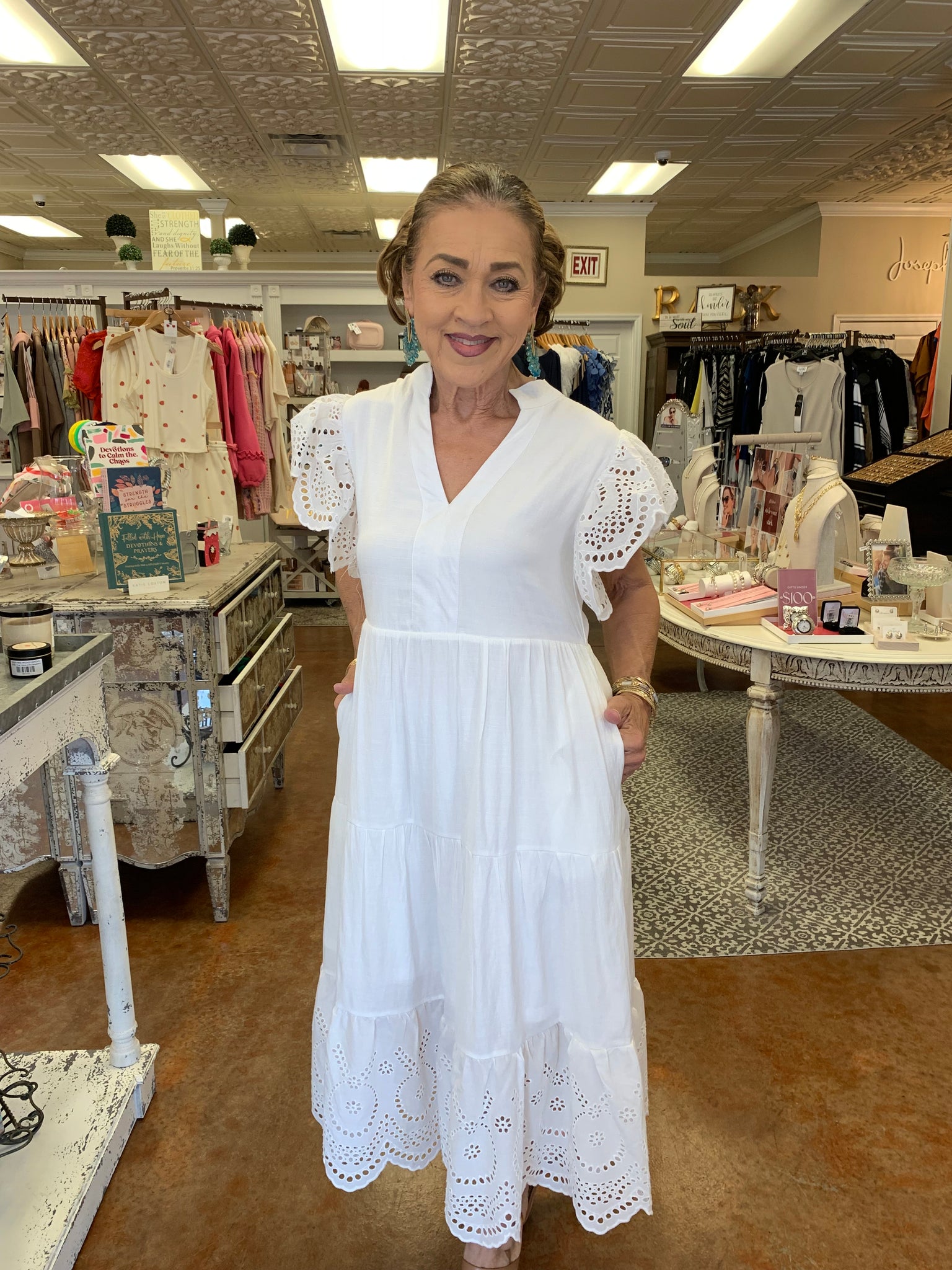 Solid tiered midi dress featuring v neckline and laced sleeve and hem.
