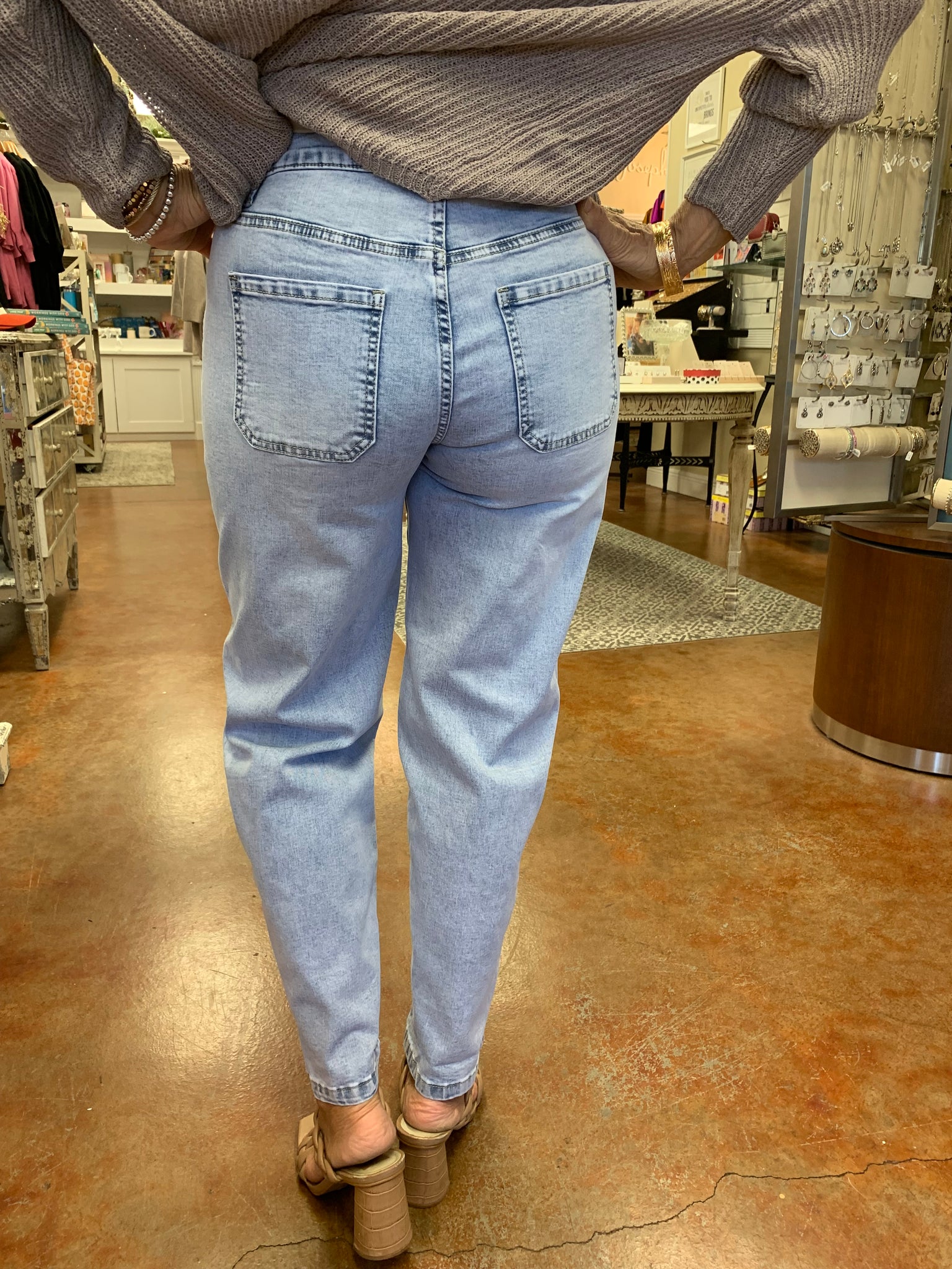 Add this casual jeans to your daily wardrobe. Enjoy a comfortable fit with the drawstring waist. Keep your essentials close with the side and back pockets. Feel effortlessly stylish with this playful twist on classic denim.